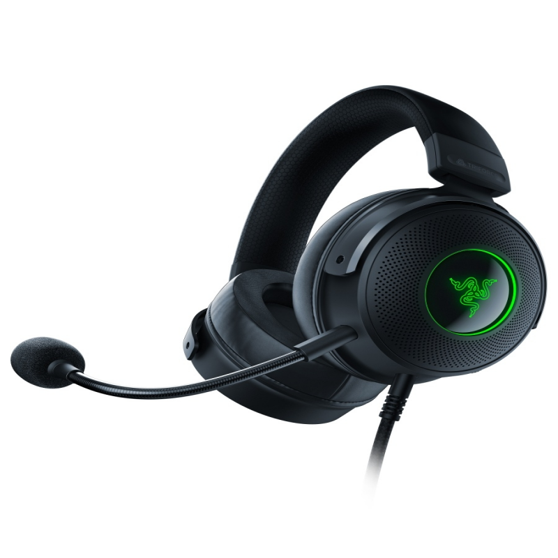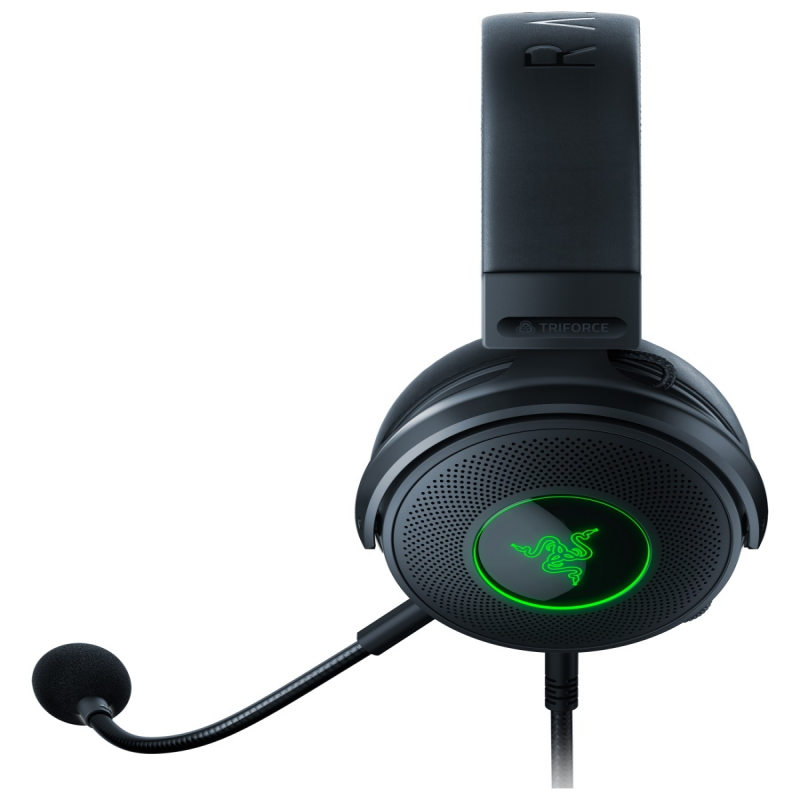 Coloriez votre immersion avec le Razer Kraken V3 - un casque de jeu pour ordinateur avec éclairage Razer Chroma RGB pour créer des effets lumineux dynamiques dans les jeux et sur les appareils. Ce casque, qui vous séduira par son apparence et son son, est équipé de transducteurs améliorés et de la technologie de son surround pour un son réaliste. Le son surround amélioré 7.1 vous plonge au cœur de l'action du jeu. Le transducteur à 3 composants offre un son plus dynamique, tandis que le microphone amovible supprime tous les bruits environnants, ne laissant que votre voix. Personnalisez l'éclairage comme vous le souhaitez dans plus de 150 jeux avec le support de 500 appareils de plus de 50 fabricants. / Connexion : USB Type-A / Son surround 7.1 THX Spatial Audio / Haut-parleurs Razer TriForce de 50 mm / Microphone cardioïde Razer HyperClear / Contrôle du volume / Interrupteur de microphone Développer la description