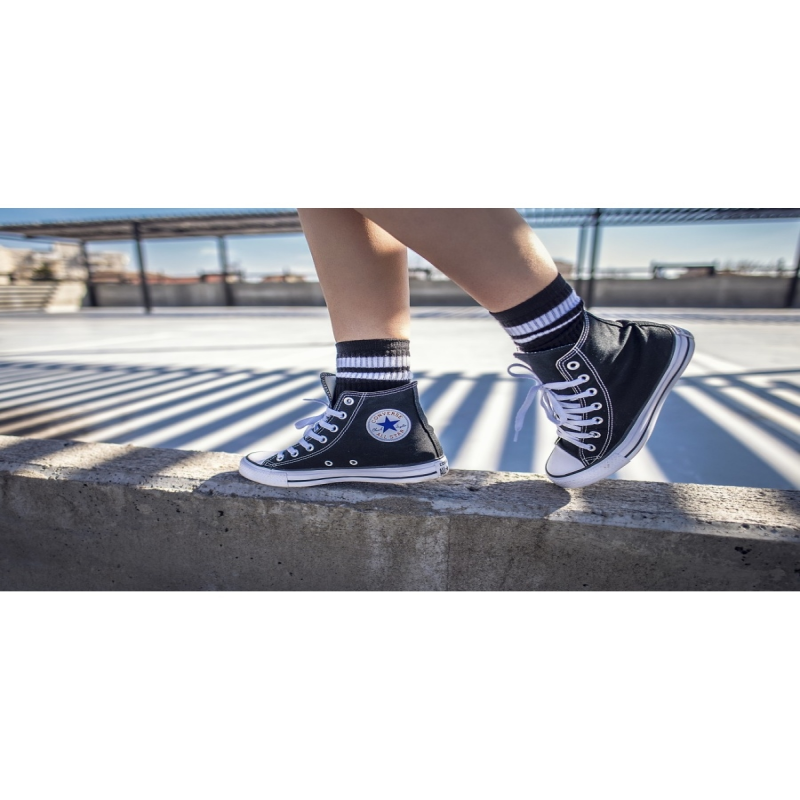 BASKETS/HAUTS/CONVERSE/CONVERSE/Un style de chaussure reconnaissable au premier coup d'œil, praticité et larges possibilités de combinaison avec des vêtements, tout cela ce sont les baskets Converse. Une chaussure aussi confortable doit être dans l'arsenal de chaque personne qui apprécie le confort. Elles peuvent être utilisées dans des looks quotidiens et décontractés. Modèle de base : toile en coton classique simple, semelle en caoutchouc vulcanisé et logo avec étoile. Convient presque à tous les styles et looks, un élément indispensable de toute garde-robe. Les modeuses d'aujourd'hui renoncent de plus en plus aux belles et élégantes chaussures à talons. Les Louboutins prennent la poussière sur les étagères et, il semble qu'elles ne resteront bientôt que pour les réceptions mondaines. Les filles choisissent des chaussures élégantes et confortables à semelle plate. Les garçons, quant à eux, continueront à porter des baskets comme ils l'ont toujours fait. L'une des marques de chaussures les plus reconnaissables est bien sûr Converse.